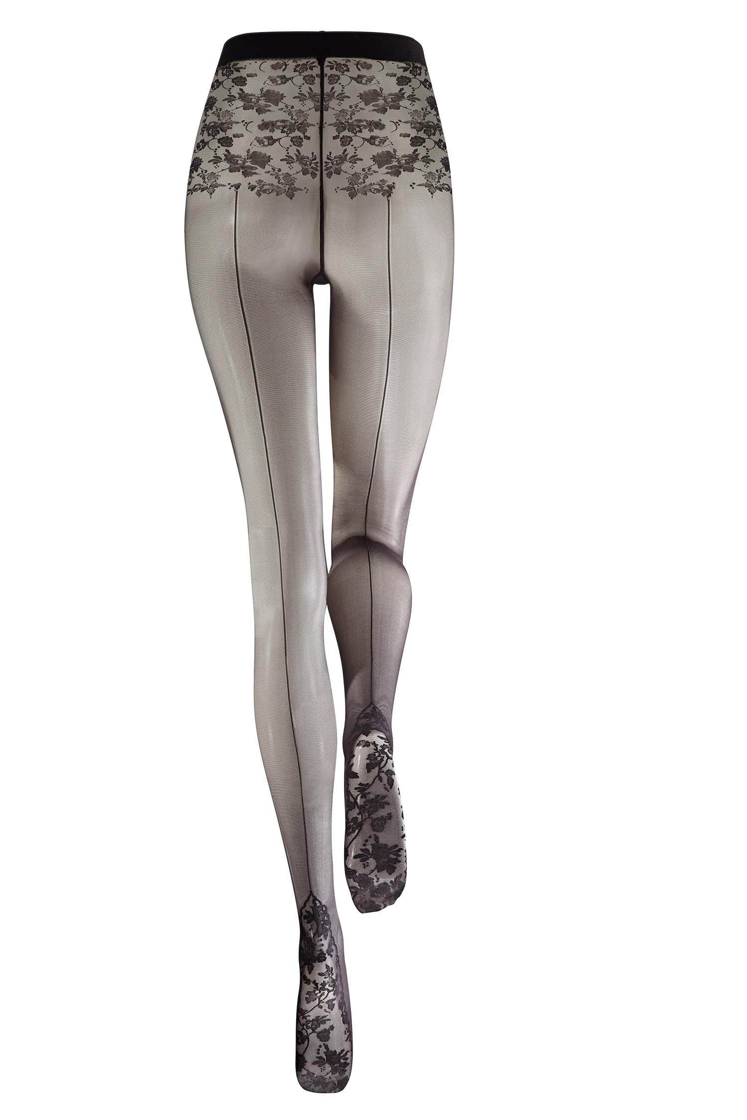 Fiore - 30 denier mock back seam tights with romantic flower pattern
