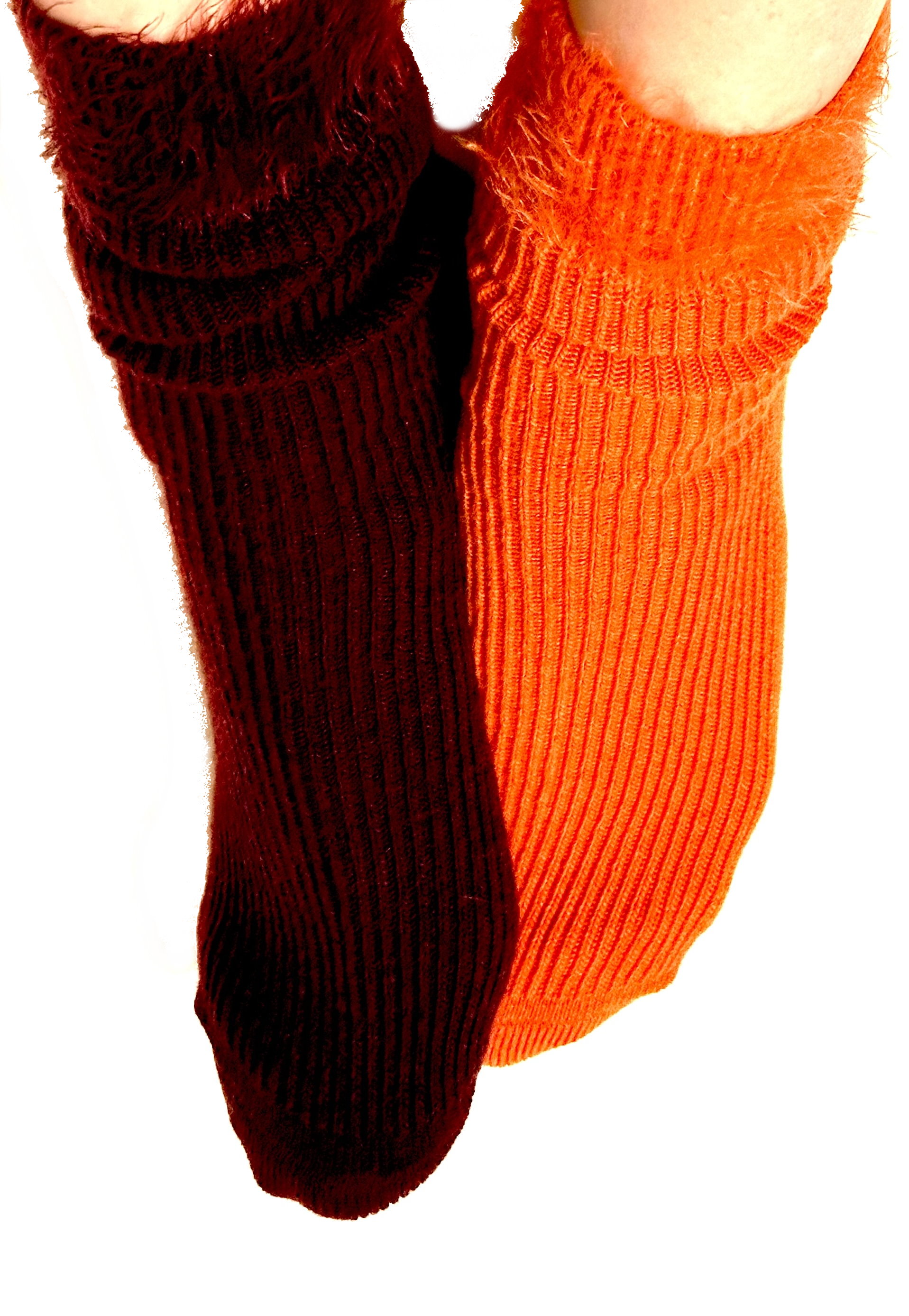 Ribbed winter socks. Very warm and soft thanks to viscose, wool and cashmere. With fur effect top.
